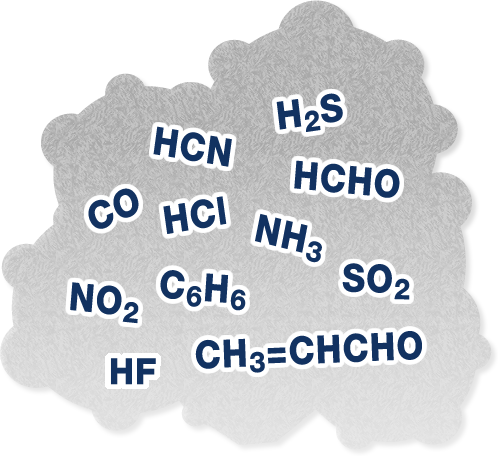 建物火災における死者の半数以上は逃げ遅れにより亡くなっており、その主な原因は火災発生時に大量発生する一酸化炭素(CO)といわれています。特に、火のついたタバコが布団の上でくすぶるようなゆっくりと進行する火災では、煙や炎と同時に大量のCO(無色無臭)が発生しており、これを吸い込み続けることで気づかない内に身体の自由が奪われ、逃げる機会を失ってしまいます。